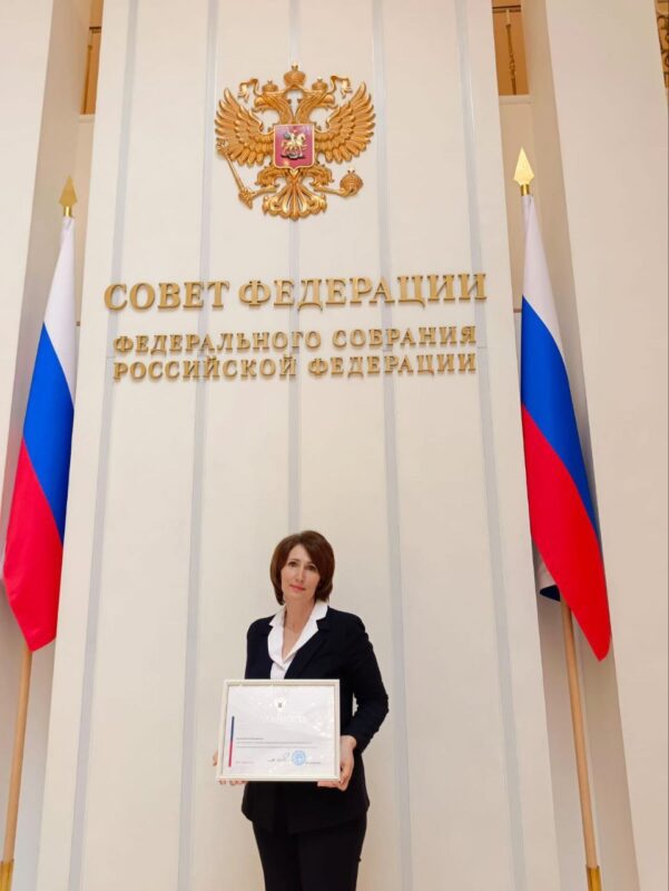 Валентина Матвиенко вручила награду Елене Белёвой за весомый вклад в развитие местного самоуправления и активную общественную работу.