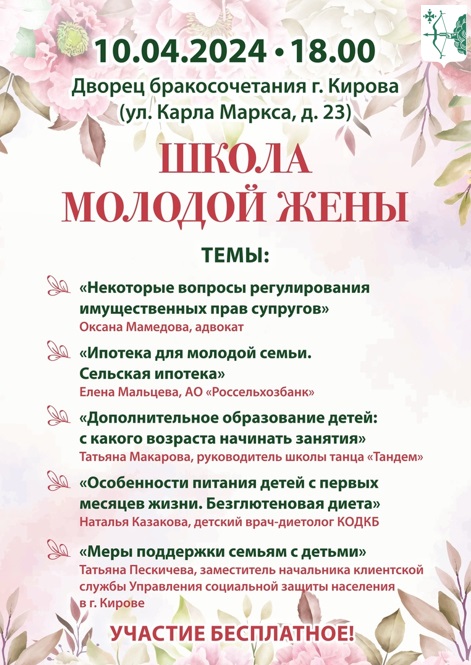 10 апреля в 18:00 во Дворце бракосочетания состоится обучающий проект "Школа молодой жены".