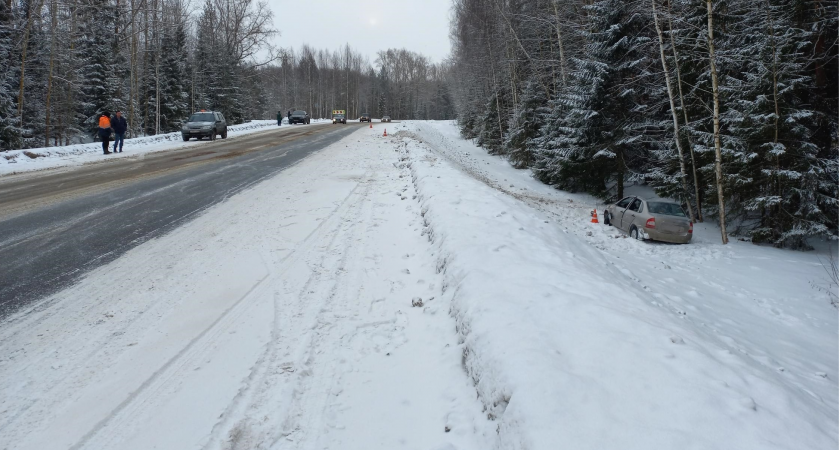 В Кирово-Чепецком районе водитель Лады Калины съехал с дороги и перевернулся