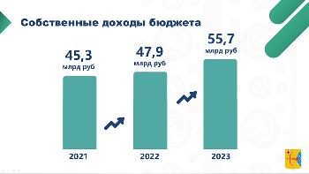 Так, собственные доходы бюджета в 2021 году составили 45,3 млрд рублей в 2022 – 47,9 млрд, а в 2023 – 55,7 млрд рублей.