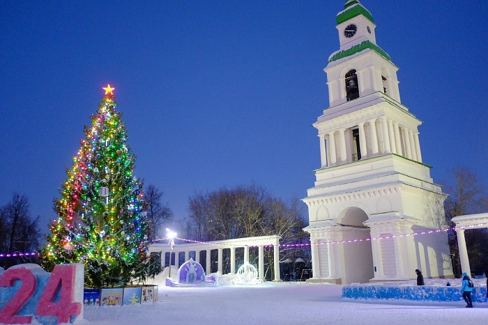 В этом году Соборную площадь украшает настоящая ель, которую своими силами установили местные предприниматели, снежный лабиринт, горки, ледяные скульптуры. Несмотря на мороз, на площади гуляют взрослые, катаются дети.