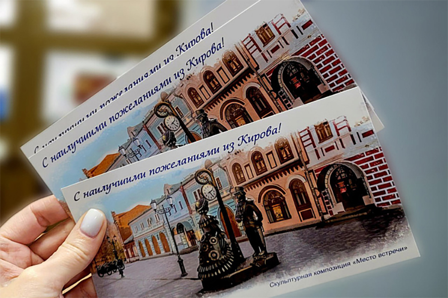 Почта России выпустила очередную открытку к 650-летию города Кирова. На ней - с надписью «с наилучшими пожеланиями из Кирова» - изображена скульптура «Место встречи» на улице Спасской. Ранее, напомним, уже были выпущены открытки с изображением береговой ротонды в Александровском саду, Свято-Успенского кафедрального собора Трифонова мужского монастыря и особняка купца Т.Ф. Булычёва.