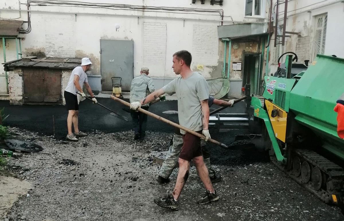 По адресам ул. 30-летия Победы, 18, 20 ведутся работы по укладке асфальтобетона.