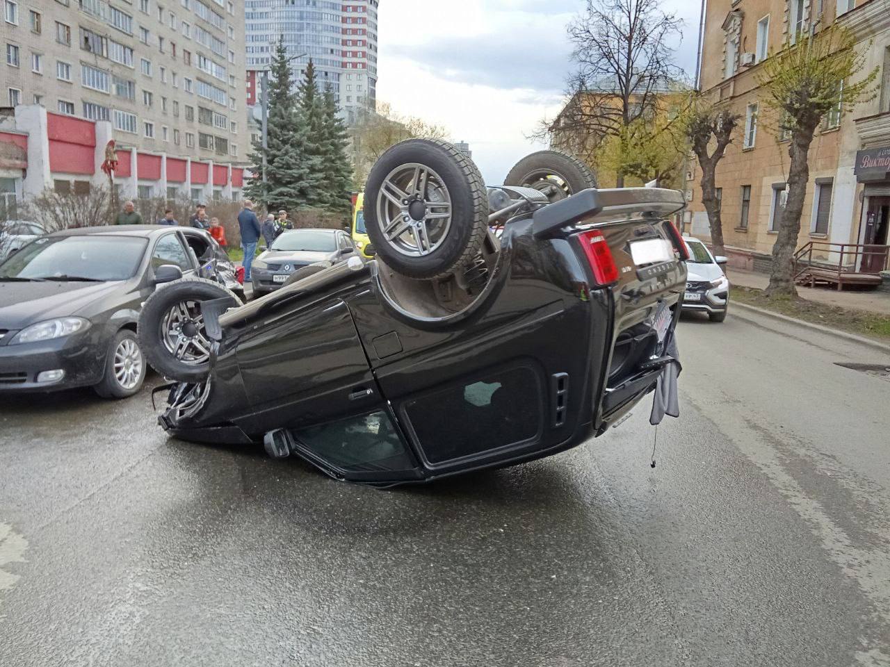В УГИБДД по Кировской области рассказали о ДТП, которое произошло вечером 29 апреля на улице Преображенской. Согласно информации, водитель автомобиля "Нива" не справился с управлением и столкнулся с двумя припаркованными автомобилями, после чего перевернулся.