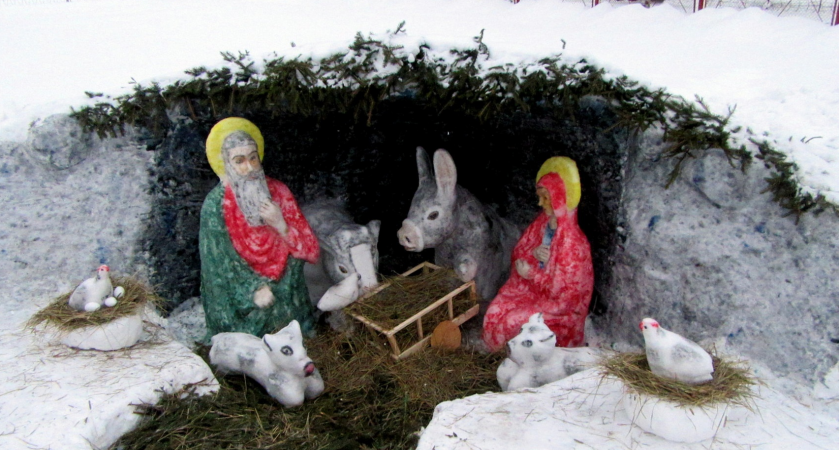 В лечебно-исправительном учреждении №12 изобразили персонажей Святого Семейства: объёмные фигуры Богомладенца Иисуса Христа, Пресвятой Богородицы и праведного Иосифа из льда и снега.