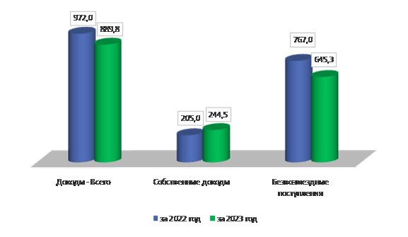 Объем безвозмездных поступлений за 2023 года ниже, чем за год, предшествующий отчетному на 121,7 млн. руб. или на 15,87%.