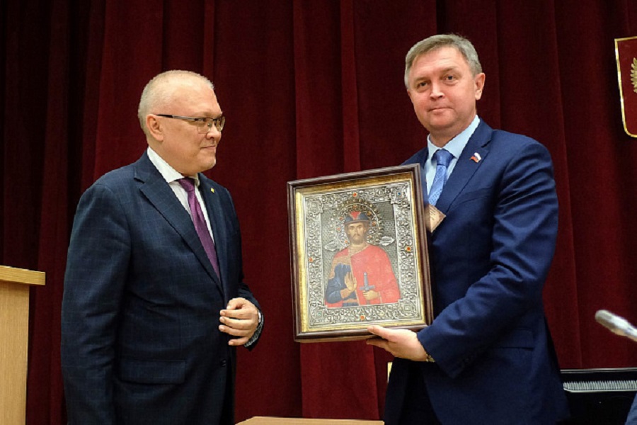 Он поблагодарил членов Законодательного собрания за взаимодействие и консолидированную работу, вручил икону святого Александра Невского председателю областного парламента Роману Бересневу. Другим депутатам и ветеранам также были вручены благодарственные письма и почётные знаки.