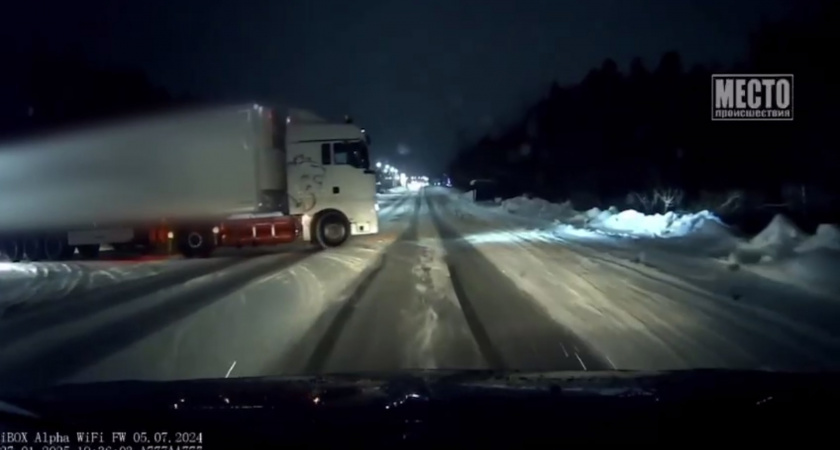 В неуказанный день автор видеозаписи двигался по дороге из Кирово-Чепецка по участку мимо поворота на квартал Цепели. Внезапно наперерез ему на трассу выкатился грузовой автомобиль с полуприцепом.