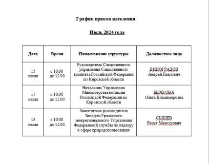 Графики приема населения июль 2024 в приемной Президента РФ в Кировской области