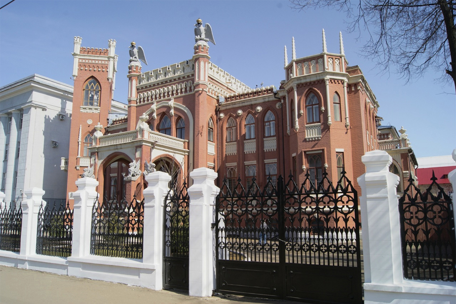 В народе это здание, в котором сегодня размещается Управление ФСБ России по Кировской области, более известно как «красный замок Тихона Булычёва» - одно из самых необычных и ярких дореволюционных зданий Вятки, возведённое по проекту архитектора Ивана Чарушина в 1911 году по инициативе известного вятского пароходовладельца, миллионера и мецената Тихона Булычёва.