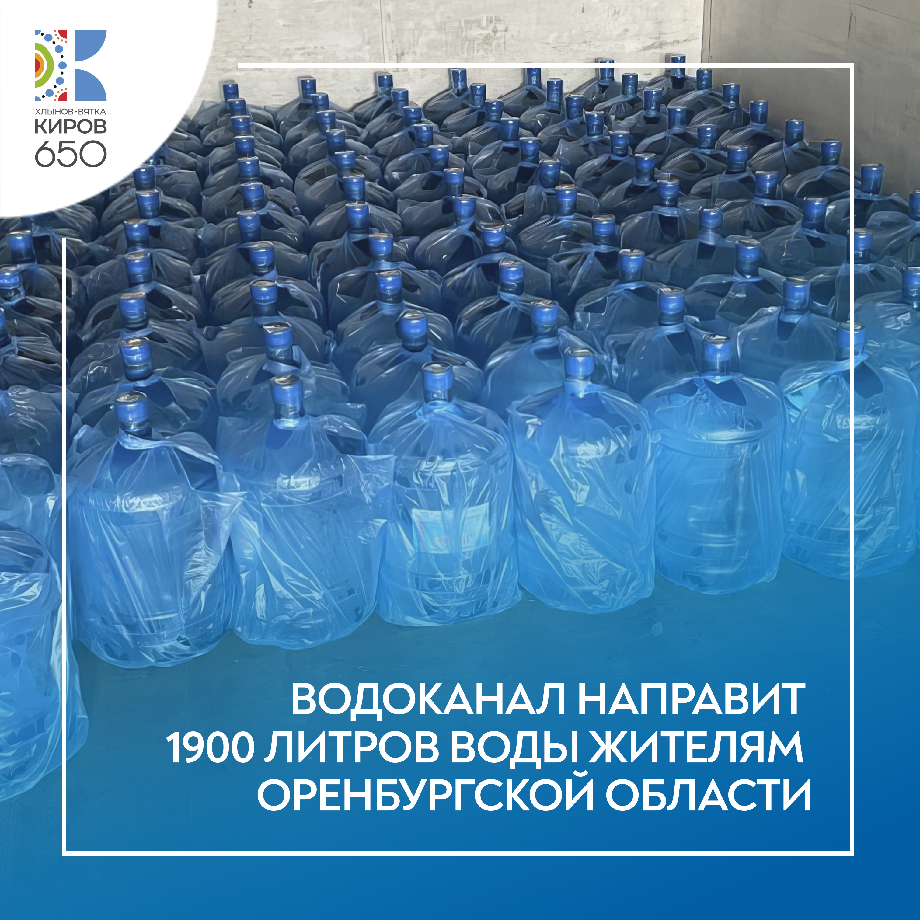 Сбор гуманитарной помощи для жителей Оренбургской области объявил лава администрации города Кирова Вячеслав Симаков 8 апреля. Сегодня МУП «Водоканал» доставил на точку сбора 100 бутылей питьевой воды по 19 литров каждая
