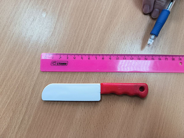 Родители привезли ребенка в экстренное отделение больницы. Малышу сделали рентген с контрастом. На снимке был заметен инородный предмет, размеры которого четко не определялись. Врачи стали с помощью эндоскопа извлекать предмет из пищевода. Оказалось, что это был пластмассовый ножик 14 см длиной. Это стало неожиданностью и для докторов, и для родителей. Так как в больницу они приехали оперативно, уже на следующий день малыша выписали без осложнений.